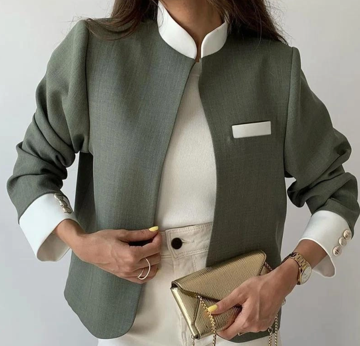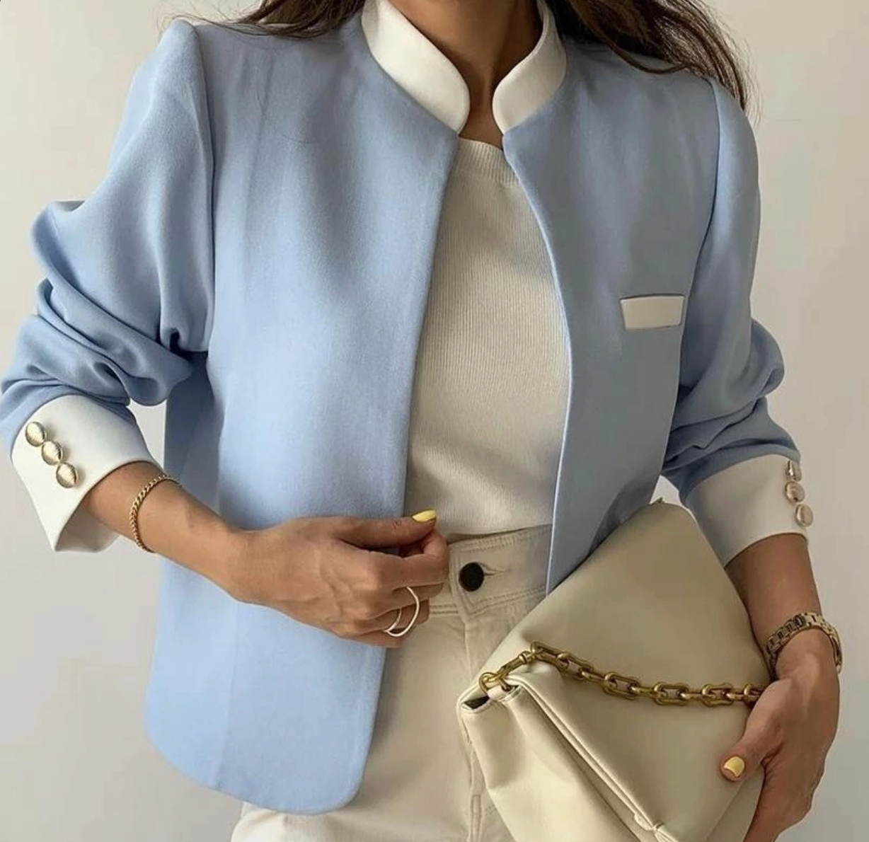 • Élégance contemporaine : Le col montant et les lignes épurées apportent une touche raffinée et intemporelle.