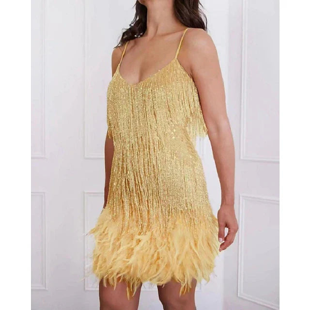 Ornée de paillettes étincelantes et finie avec des franges en plumes, la Robe Lantana vous permet de briller avec élégance et styles.