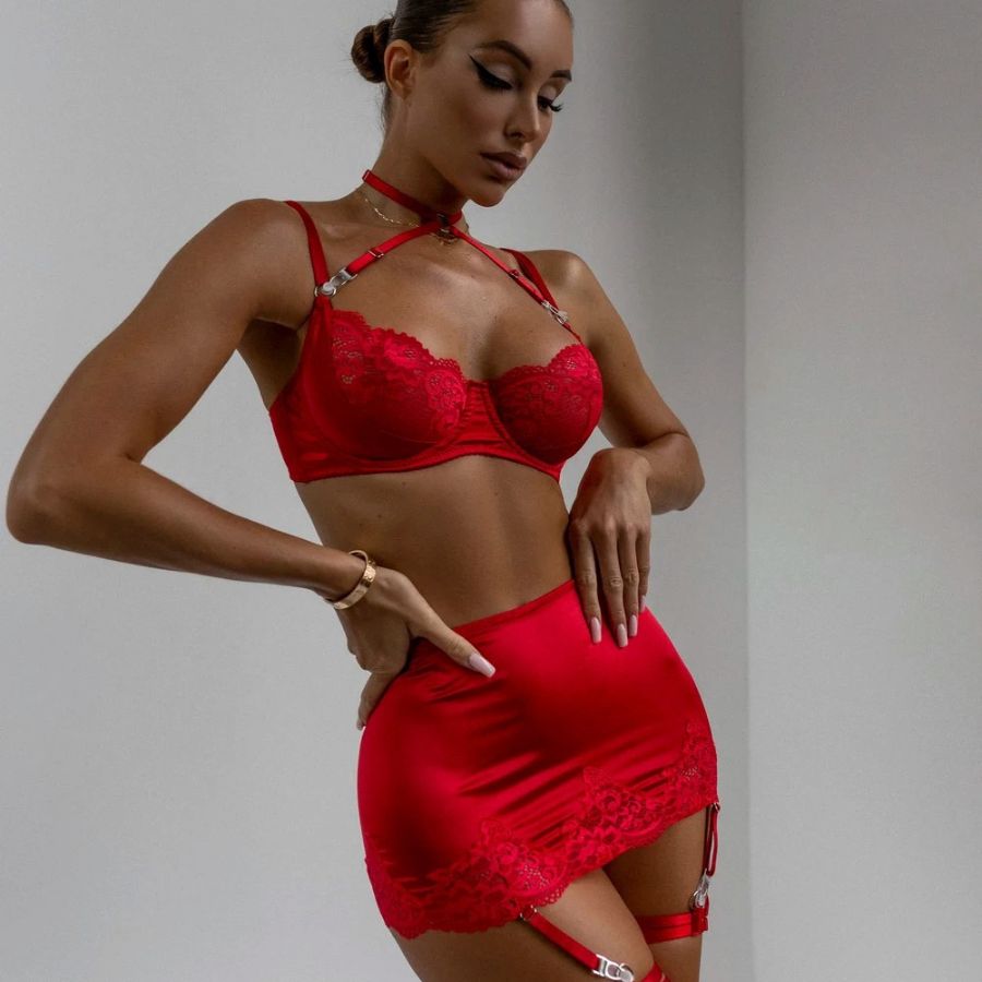 Découvrez "MARGAUX", la lingerie qui sublime vos courbes tout en mêlant sensualité et élégance. Avec ses délicats détails en dentelle et sa teinte rouge audacieuse, faites de chaque instant un moment inoubliable, où la confiance et le charme se rencontrent. Disponible en tailles : S, M, L, XL et XXL, cet ensemble est pensé pour magnifier chaque morphologie avec finesse.